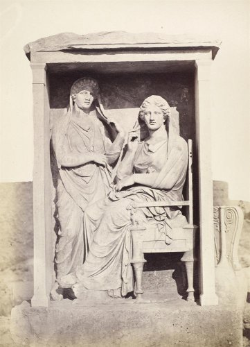 Στη φωτογραφία του Πέτρου Μωραΐτη (Αθήνα, γύρω στα 1870) αποτυπώνεται ένα από τα τελευταία επιτύμβια μνημεία που ενεγέρθηκαν στον Κεραμεικό πριν την έκδοση του απαγορευτικού νομού του Δημητρίου Φαληρέως το 317π.Χ περί καλλωπισμού των τάφων. Πρόκειται για την επιτύμβια στήλη της Παμφίλης και Δημητρίας που χρονολογείται το 320 π.Χ. Το ανάγλυφο φέρει επιγραφή «Η Δημητρία και Παμφίλη» και εικονίζει την Παμφίλη να κάθεται σε θρόνο και την αδελφή της Δημητρία να στέκεται όρθια δίπλα της.