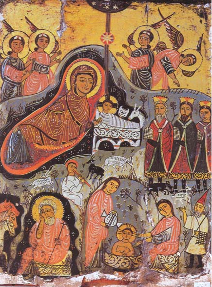 «Τί να σου προσφέρουμε, Χριστέ, που φανερώθηκες στη γη σαν άνθρωπος για χάρη μας; Διότι καθένα από τα δημιουργήματα, που εσύ έπλασες, σου εκφράζει (με το δικό του τρόπο) την ευχαριστία και ευγνωμοσύνη του: οι Άγγελοι σε υμνολογούν· οι ουρανοί δίνουν τον αστέρα (που οδηγεί τους μάγους)· οι Μάγοι σου προσφέρουν τα δώρα τους· οι βοσκοί δείχνουν το θαυμασμό τους· η γη (προσφέρει) το σπήλαιο· η έρημος τη φάτνη· εμείς δε οι άνθρωποι (σου δίνουμε) μια Μητέρα Παρθένο. Εσύ που είσαι ο προαιώνιος Θεός, ελέησέ μας». * * * |