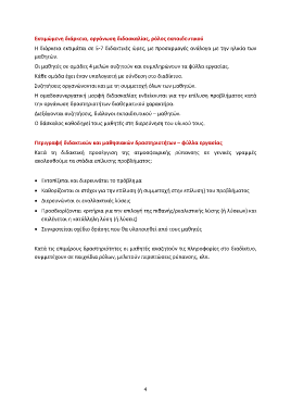 Εκτιμώμενη διάρκεια, οργάνωση διδασκαλίας, ρόλος εκπαιδευτικού Η διάρκεια εκτιμάται σε 5-7 διδακτικές ώρες, με προσαρμογές ανάλογα με την ηλικία των μαθητών. Οι μαθητές σε ομάδες 4 μελών συζητούν και συμπληρώνουν τα φύλλα εργασίας. Κάθε ομάδα έχει έναν υπολογιστή με σύνδεση στο διαδίκτυο. Συζητήσεις οργανώνονται και με τη συμμετοχή όλων των μαθητών. Η ομαδοσυνεργατική μορφή διδασκαλίας ενδείκνυται για την επίλυση προβλήματος κατά την οργάνωση δραστηριοτήτων διαθεματικού χαρακτήρα. Διεξάγονται συζητήσεις, διάλογοι εκπαιδευτικού – μαθητών. Ο δάσκαλος καθοδηγεί τους μαθητές στη διερεύνηση του υλικού τους. Περιγραφή διδακτικών και μαθησιακών δραστηριοτήτων – φύλλα εργασίας Κατά τη διδακτική προσέγγιση της ατμοσφαιρικής ρύπανσης σε γενικές γραμμές ακολουθούμε τα στάδια επίλυσης προβλήματος: • Εντοπίζεται και διερευνάται το πρόβλημα • Καθορίζονται οι στόχοι για την επίλυση (ή συμμετοχή στην επίλυση) του προβλήματος • Διερευνώνται οι εναλλακτικές λύσεις • Προσδιορίζονται κριτήρια για την επιλογή της πιθανής/ρεαλιστικής λύσης (ή λύσεων) και επιλέγεται η κατάλληλη λύση (ή λύσεις) • Συγκροτείται σχέδιο δράσης που θα υλοποιηθεί από τους μαθητές Κατά τις επιμέρους δραστηριότητες οι μαθητές αναζητούν τις πληροφορίες στο διαδίκτυο, συμμετέχουν σε παιχνίδια ρόλων, μελετούν περιπτώσεις ρύπανσης, κλπ. 4