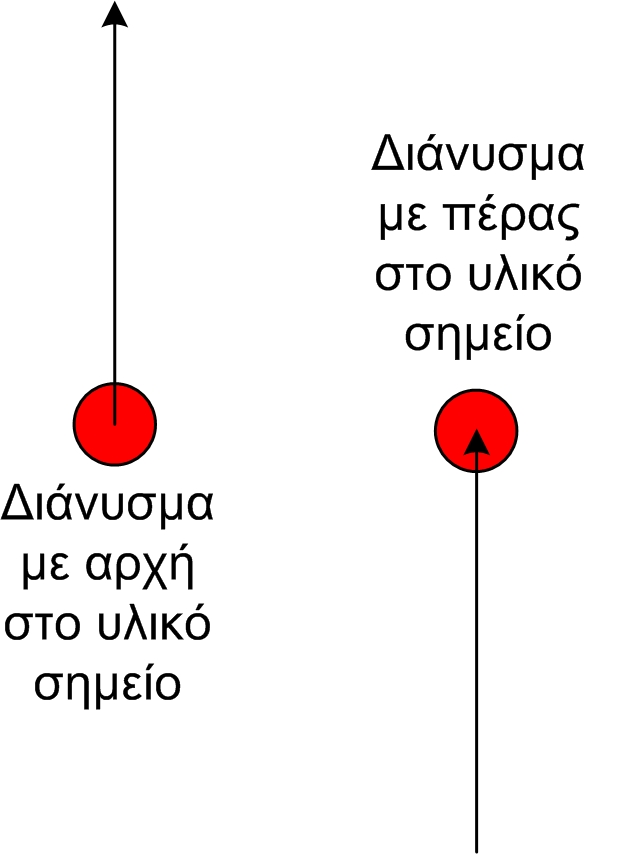 Οι δυνάμεις που ασκούνται σε ένα υλικό σημείο, ως διανυσματικά μεγέθη, είναι δυνατό να σχεδιασθούν με δύο διαφορετικούς τρόπους: είτε στο υλικό σημείο εφαρμόζεται η αρχή του διανύσματος, είτε εφαρμόζεται το πέρας του. Και οι δύο τρόποι είναι ισοδύναμοι.