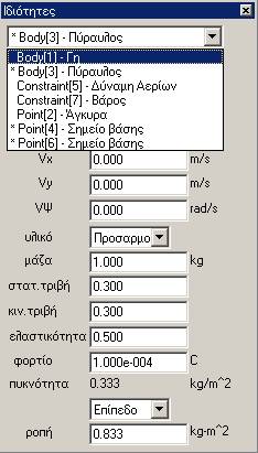 · Κατόπιν, κλείστε το παράθυρο και αφού κάνετε κλικ στη δύναμη των αερίων, επιλέξτε Παράθυρο à Ιδιότητες και δώστε τις τιμές Fx = 0 N και Fy =10N αντίστοιχα. Κλείστε το παράθυρο, επιλέξτε τη δύναμη του Βάρους και δώστε τις τιμές Fx=0 N και Fy=-10N. Το μείον δηλώνει ότι η δύναμη είναι προς τα κάτω.
