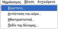 Στη συνέχεια από τη γραμμή εργαλείων επιλέξτε Μικρόκοσμος à Βαρύτητα. Εδώ επιλέξτε Καμία.