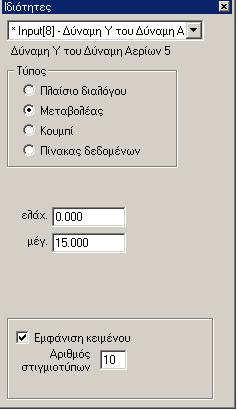 Επιλέξτε το διάνυσμα της Δύναμης των Αερίων και στην επιλογή Παράθυρο àΙδιότητες και στον Τύπο Μεταβολέας ρυθμίστε ως μέγιστη τιμή την 15.000 και ως ελάχιστη την 0.000 και των αριθμό στιγμιότυπων σε 10.
