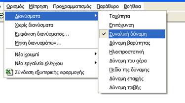 Μπορείτε επίσης να δείτε το διάνυσμα της συνισταμένης δύναμης κατά την κίνηση επιλέγοντας από τη γραμμή εργαλείων Ορισμόςàδιανύσματαà Συνολική δύναμη