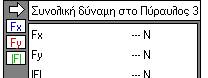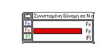 Επίσης έχετε τη δυνατότητα να προβάλλετε τη συνισταμένη δύναμη του Βάρους και της Δύναμης των Αερίων σε μορφή πίνακα. Στην οθόνη εμφανίζεται το εικονίδιο-πίνακας της Συνισταμένης Δύναμης Fy την οποία μπορείτε να προβάλλετε σε μορφή αριθμητικής τιμής ή γραφικής παράστασης ή ραβδογράμματος. Αφού κάνετε κλικ πάνω στον πύραυλο επιλέξτε από τη γραμμή εργαλείων Μέτρηση και Συνολική Δύναμη.