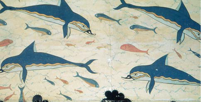 ![Η τοιχογραφία των δελφινιών από το δωμάτιο της βασίλισσας (αναπαράσταση) [πηγή: «Ο Μινωικός πολιτισμός» Ιστορία Γ΄ Δημοτικού]](delfinia_small.png)
