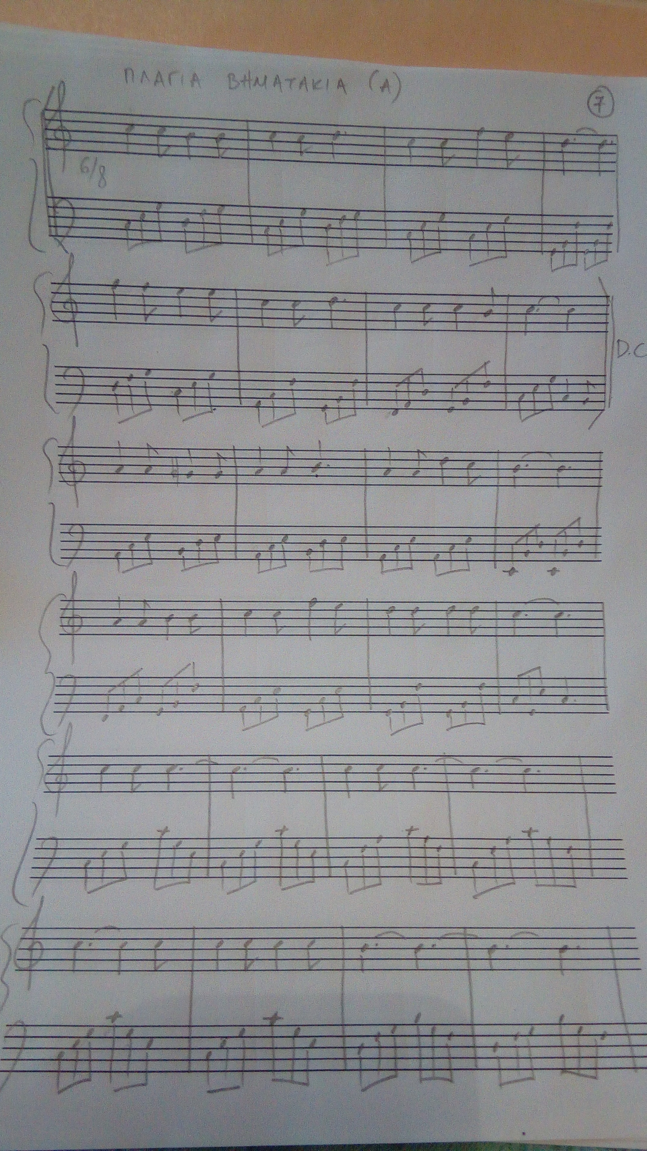 Δράση 7η:Οι κάτοικοι της πόλης του χειμώνα ήταν κουρασμένοι από το κρύο και σκυθρωποί (αποτυπώνεται κινητικά από τους μαθητές). Τα παιδιά τούς δώρισαν τη φλόγα (δεύτερο δώρο του γέροντα Αρίσταρχου) για να "ζεστάνει" τις καρδιές τους. Έτσι οι καρδιές των ανθρώπων της πόλης αυτής γλύκαναν και έμαθαν από τα παιδιά να χαίρονται αυτά που έχουν. Ο Χειμώνας χάρισε στα παιδιά το κλειδί της Υπομονής. Με αυτό έπρεπε να ξεκλειδώσουν το θησαυρό της πόλης του χειμώνα που ήταν μια παρτιτούρα. Έτσι είχαν στα χέρια το δεύτερο κομμάτι ενός μουσικού χάρτη: " Όλα άσπρα σιωπηλά, χιόνι πέφτει απαλά. Λύπη νιώθω στην ψυχή βάρος στη ματιά μου. Σήκω τώρα εμπρός ευθύς, στάσου όρθιος μπορείς, χιονοπόλεμο να δεις, να χαρείς καρδιά μου. Οι μαθητές χορεύουν σε μουσική σε μουσική forte piano. Τα παιδιά αποχαιρέτησαν τους κατοίκους της πόλης και μαζί με το Χειμώνα συνέχισαν το ταξίδι τους. Σκοπός: Να νιώσουν, να εκφράσουν χαρακτηριστικά του χειμώνα με παντομίμα, μουσικά και κινητικά.