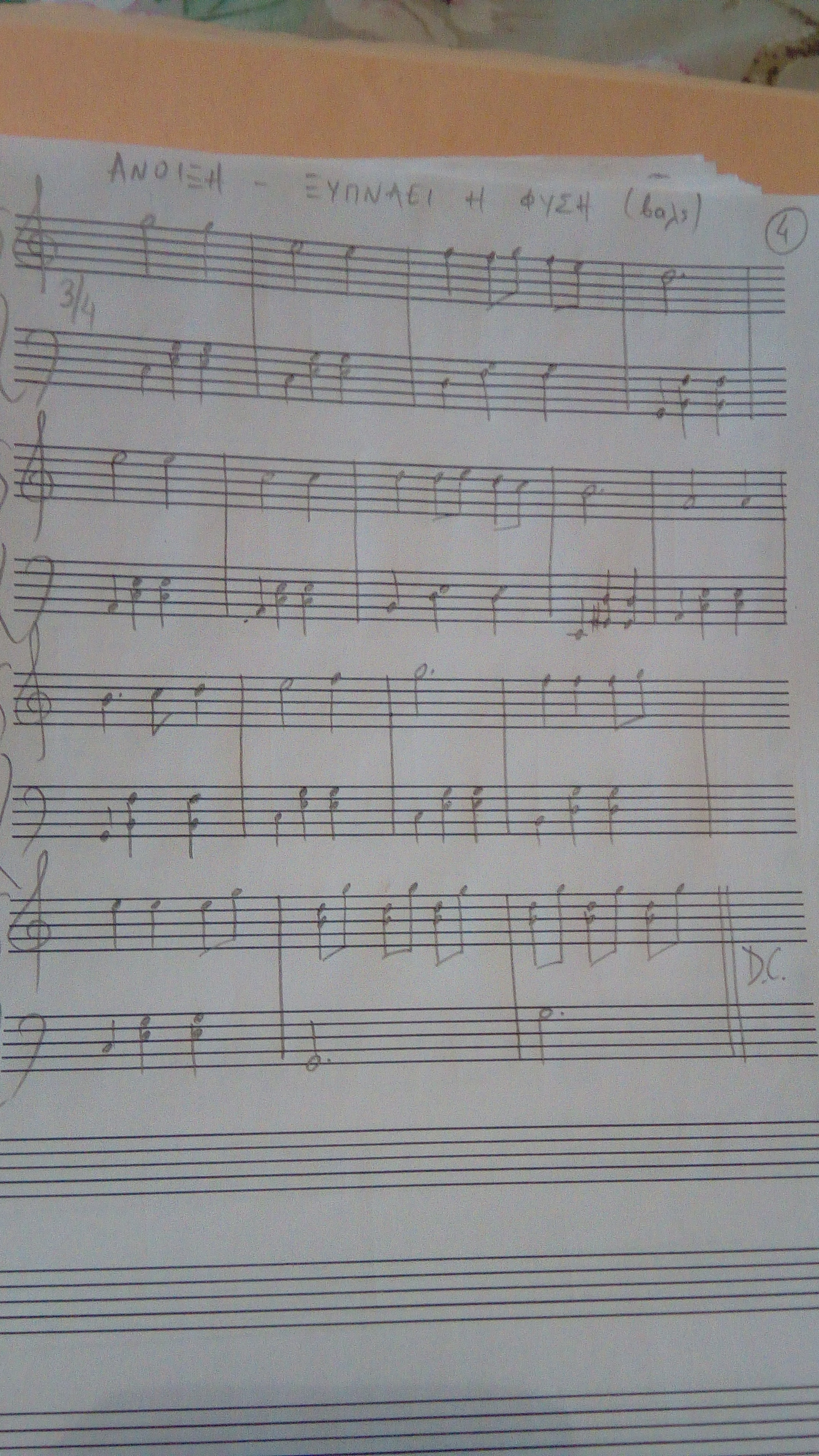 Δράση 10η: Τα παιδιά χάρισαν το κουδουνάκι στους κατοίκους της πόλης της Άνοιξης για να τους θυμίζει πάντα να ξυπνούν μετά το βαρύ ύπνο του χειμώνα και αυτοί με τη σειρά τους χάρισαν στα παιδιά το κλειδί της Αγάπης. Με αυτό άνοιξαν το σεντούκι του θησαυρού της πόλης, το οποίο ήταν φτιαγμένο από ανθισμένες μαργαρίτες. Μια ακόμα πολύτιμη μουσική παρτιτούρα φάνηκε. ήταν το τραγούδι της Άνοιξης, ένα υπέροχο βαλσάκι: ¨Ξυπνάει η φύση, κελαηδούνε πουλιά, λιώνουν τα χιόνια ψηλά στα βουνά, λουλούδια ανθίζουν, μοσχοβολιά, χελιδόνια θα΄ρθουνε σκορπώντας χαρά!"Τα παιδιά χορεύοντας (μίμηση και κίνηση) αποχαιρέτησαν τους κατοίκους της πόλης της Άνοιξης. Σκοπός: Να χορέψουν σε ζευγάρια, να αντιδράσουν γρήγορα σε μουσικό ερέθισμα, να μάθουν το χορό της "σκούπας" των δωδεκαννήσων, αντικαθιστώντας τη σκούπα με μια τεράστια παπαρούνα ύψους 1,60μ (φτιαγμένη από θήκη ρολού των σχολικών χαρτών, βαμένο πράσινο και στην κορυφή του κόκκινα φύλλα χαρτιού γκοφρέ).