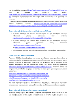 τον Αυστραλέζικο οργανισμό http://beachsafe.org.au/tsunami/ema/pages/05_history.html αλλά και τσουνάμι που συνέβησαν στην Ελλάδα (http://maps.ngdc.noaa.gov/viewers/hazards/,http://nctr.pmel.noaa.gov/database_devel.ht ml). Εντοπίζουν τις περιοχές αυτές στο Google earth και αιτιολογούν τη εμφάνιση των τσουνάμι. Οι μαθητές μπορούν να επαληθεύσουν τις προβλέψεις τους μελετώντας χάρτες με τις ζώνες πιθανής εμφάνισης τσουνάμι (http://schools.aemi.edu.au/tsunami/about-tsunami, http://www.senat.fr/opecst/english_report_tsunami/english_report_tsunami3.html). Δραστηριότητα 2, φύλλο εργασίας 2: πρόβλεψη και επαλήθευση • Σημειώστε περιοχές του κόσμου που γνωρίζετε ότι έχει προκληθεί τσουνάμι. Ενδεικτικοί χάρτες βρίσκονται στον ιστότοπο http://beachsafe.org.au/tsunami/ema/pages/05_history.html. • Σημειώστε περιοχές της Ελλάδας που γνωρίζετε ότι έχει προκληθεί τσουνάμι. Ενδεικτικοί χάρτες βρίσκονται στους ιστότοπους http://maps.ngdc.noaa.gov/viewers/hazards/ και http://nctr.pmel.noaa.gov/database_devel.html. • Υπάρχει κάποιο πρότυπο που φαίνεται να ακολουθούν οι εμφανίσεις των τσουνάμι; Δραστηριότητα 3: σωστή συμπεριφορά Παρότι η Ελλάδα είναι μία χώρα στην οποία η εκδήλωση τσουνάμι είναι σπάνια, ο πληθυσμός οφείλει να γνωρίζει τις ενέργειες που πρέπει να κάνει για την προστασία του. Οι μαθητές μελετούν το μαθησιακό αντικείμενο του ΔΕΥΚΑΛΙΩΝ για το τσουνάμι και τις σχετικές πληροφορίες από τον ιστότοπο της Γενικής Γραμματείας Πολιτικής Προστασίας http://www.gscp.gr/ggpp/site/home/ws/promote/odigies/sismi.csp. Μπορούν επίσης να ενημερωθούν από διεθνή κέντρα για τα τσουνάμι τα οποία έχουν σχετικούς εκπαιδευτικούς ιστότοπους: http://www.weatherwizkids.com/weather-safety-tsunami.htm, http://www.sciencekids.co.nz/sciencefacts/earth/tsunamis.html, http://kidsgeo.com/geography-for-kids/0146B-tsunamis.php, http://www.fun-facts.org.uk/earth/tsunami.htm. Με βάση τις πληροφορίες που συγκεντρώνουν, σχηματίζουν κατάλογο με τις σωστές ενέργειες στην περίπτωση που εμφανισθεί τσουνάμι και βρίσκονται κοντά στην παραλία. Δραστηριότητα 3, φύλλο εργασίας 3: σωστή συμπεριφορά Η Ελλάδα είναι μία χώρα στην οποία η εκδήλωση τσουνάμι είναι σπάνια. Αυτό όμως δεν μας εξασφαλίζει ότι δεν θα συμβεί, ούτε βέβαια και το πότε θα συμβεί. Επομένως είναι 6