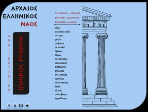 Διαδραστική παρουσίαση ιστορικού υλικού και συνοδευτική άσκηση, με θέμα τον ιωνικό ρυθμό στην αρχαία ελληνική αρχιτεκτονική. Στόχος του μαθησιακού αντικειμένου είναι ο εμπλουτισμός των γνώσεων των μαθητών σχετικά με τα χαρακτηριστικά των αρχαίων ελληνικών ναών ιωνικού ρυθμού.